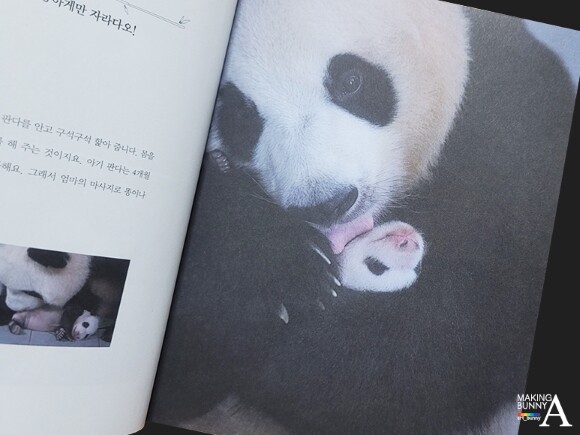 아기 판다는 4개월 전까지는 스스로 응가를 하지 못해 엄마가 핥아주면서 마사지를 해줘야 똥이나 오줌을 누게 되는데 어느 정도 성장하기까지 지극한 엄마의 손길이 필요함을 알 수 있다.