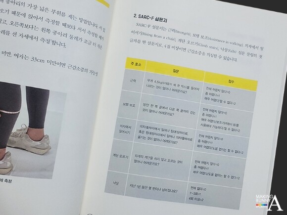 SARC-F 설문지를 통해 근감소증을 자가 진행해 보자. 4점 이상이면 근감소증을 의심할 수 있다.