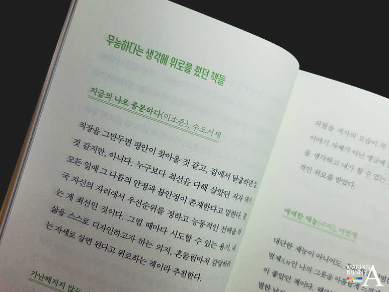 역시 그 상사나 동료나, 누가 보아도 이렇게 방에 틀어 박혀 사는 나보다는 훨씬 낫다. 나는 내 밥벌이도 못 하고 있다. 병에 걸린 것도 아니다. 병은커녕 이렇게 식욕도 좋고 수면 시간도 넉넉한데, 일은 하지 않는다. 어느 모로 보나 인간쓰레기다.