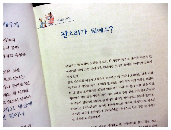 그리고 '더 알고 싶어요'라는 코너를 통해 이미 소개한 우리 악기나 음악에 대해 자세한 정보를 실어 놓았어요,