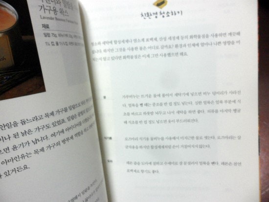 로즈마리로 만든 세제로 식기를 설겆이 하고 라벤더와 밀랍을 사용해 만든 왁스로 가구를 닦고