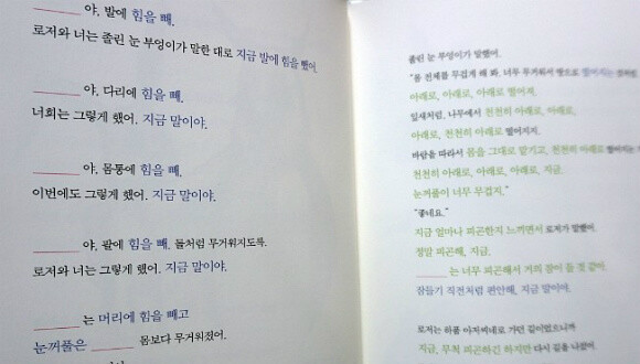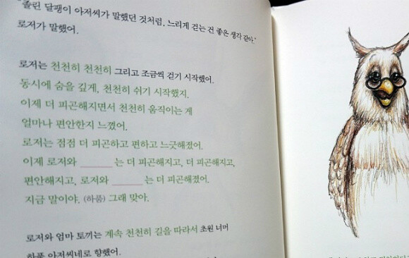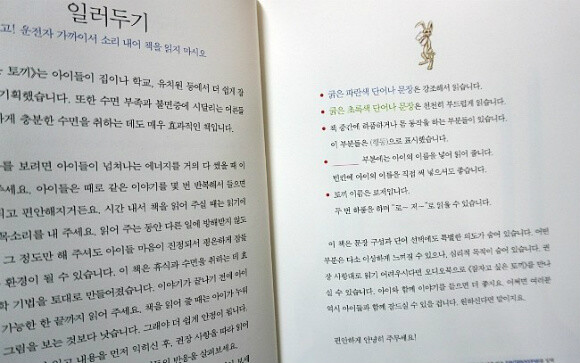 문장중에 파란글씨로 쓰여 있는건 강조해서 읽고 초록 글씨는 천천히 부드럽게 읽으라네요,