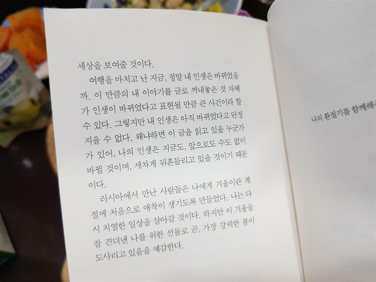 같은 라시아횡단열차를 타 본 좋아하는 작가가 들려준 이 한마디의 말만으로도 저자의 여행은 이미 무언가 바뀌기 시작했던건 아닐까? 함께 동행하게 된 사촌동생과 함께 여행 역할을 분담하고 서로의 여행을 공유하며 켜켜이 쌓인 추억들이 이 한권의 책으로 남아 또 다른 여행을 꿈꾸게합니다.