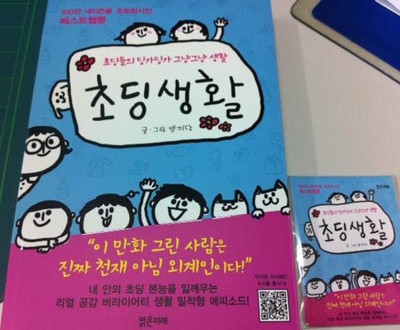 딩가딩가 초딩생활:D 초딩들의 딩가딩가 그냥그냥 생활 -초딩생활 너무나 귀여운 그림체에 정말 재미있는 에피소드 이야기들 처음 이 만화를 접한건 막내 동생이 재미있다며 보여준 웹툰 이였다. 요즘 화려한 색채와 멋진 등장인물들의 웹툰이 많은데 그에 비해 너무나 간단한 그림체 괜시리 친근감이 생기는 캐릭터들 나도 따라 그릴 수 있을것 같은 그림에 자신감을 주는~너무나도 친숙한 그림체라서 더욱더 독특하였다. 거기에 남동생 글씨체 같은 굉장히 재미있는 글씨체 까지 재미가 더해진다. 어렸을적 누구나 기억속에 한번쯤 있었던 일들. 살짝 유치하지만 별것도 아닌일에 화내고 신경쓰고 했었던 기억들이 에피소드 하나하나!!담겨 있다. 그중에 똑딱똑딱 손난로!! 정말 아끼고 아껴서 나중에 누르려고 했는데 동생이 눌렀던 경험!! ㅎㅎ 저도 있었는데 너무 신기했어요 나도 어렸을때 그랬는데!! 공감댓글을 달고 싶을 정도로 어떻게 그런 내용들을 하나하나 재미있게 그리셨는지 동생 추천 덕에 재미있는 웹툰을 발견해서 책으로 다시 보니 너무 반가웠어요 ㅎ 초딩생활을 보면서 키득키득 웃고있어요 웹툰에선 볼 수 없었던 미공개 에피소드까지!! 점점 진화하고 있는 캐릭터들! 한명한명 각자의 개성이 뚜렷해서 너무 사랑스러워요. 엠끼당님의 팬이 되었어요 요즘 덥고 짜증나고..그랬는데 초딩생활덕에 활력이 생겨요. 초딩생활 팬카페도 가입해야겠어요.