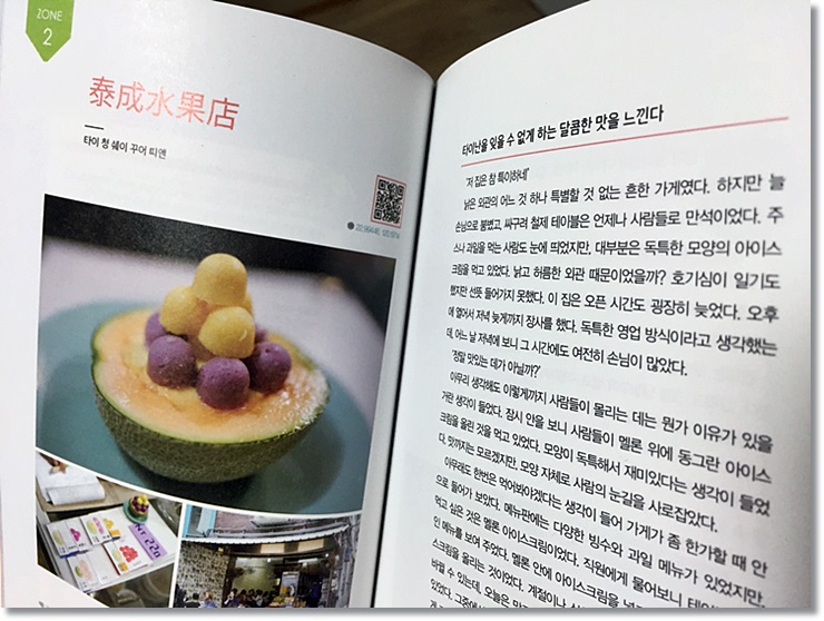 이 책은 대만을 여행하는 이들이라면 반드시 챙겨야 할 책이라고 해도 과언이 아니다. 그 이유는 대만을 대표하는 도시 중 하나인 타이난과 가오슝의 맛집들을 소개하고 있기 때문이다. 물론 맛집이라고 해도 여행자들마다 개인차가 있다는 점은 인지하자. 이 책이 다른 책과 다른 점은 유명한 음식점부터 숨어 있는 맛집까지 60여 개의 모든 음식점을 저자들이 직접 방문하여 먹어보고 느낀 점을 기록했다는 점이다. 또한, 음식점을 쉽게 찾아갈 수 있도록 음식점의 위치와 정보를 보여주는 GPS 좌표와 QR코드를 함께 제공한다. 핸드폰에 구글맵만 있으면 누구나 쉽게 찾아갈 수 있다.