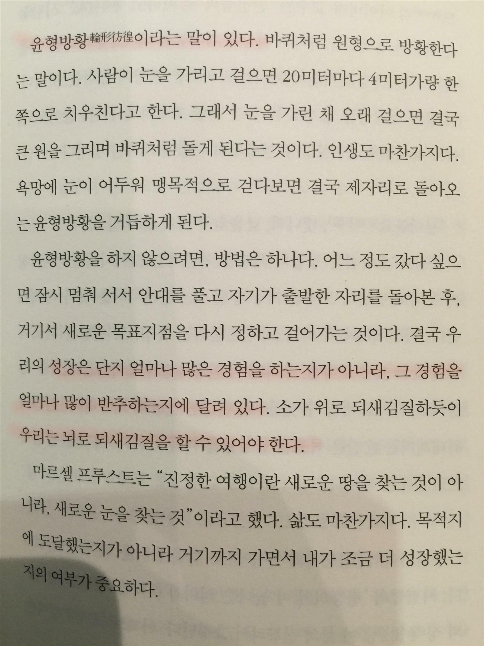 이 책은 역시 되새김할게 많다. ˝성장은 단지 얼마나 많은 경험을 하는지가 아니라, 그 경험을 얼마나 많이 반추하는지..˝ 라니!! 너무 맞잖아!!˝진정한 여행이란 새로운 땅을 찾는 것이 아니라, 새로운 눈을 찾는 것˝