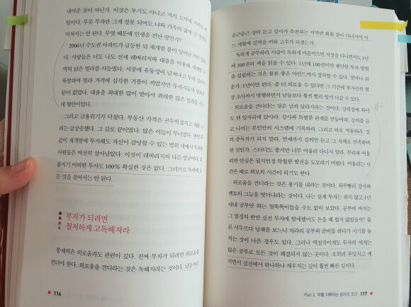 이 책은 구체적인 부동산 투자 방법을 알려주는 책이기도 하지만, '지금 당신의 인생은 그대로 좋은가?'라는 큰 질문을 던지는 자기계발서의 성격이 더 강하다. 지금 꿈꾸고 있는가? 무엇을 꿈꾸고 있는가? 꿈을 향해 달려가고 있는가? 적어도 출발이라도 했는가? 하는 질문을 끊임없이 던지고 마음에 불을 당긴다.