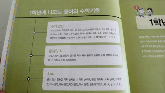 학년에 나오는 용어와 수학기호 설명이 간략히 나옵니다.