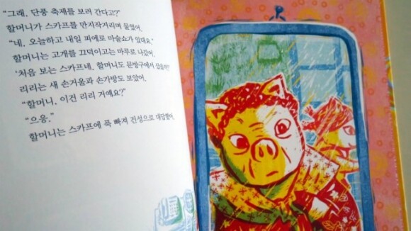 "할머니! 스카프가 진짜 예뻐요. 봐요!"