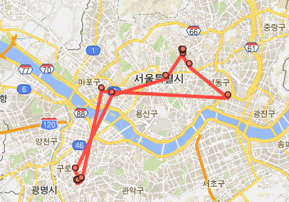 위치는 약간 오차가 있었지만(내 직장은 E마트가 아니다) 가까운 거리였기 때문에 사실 상 직장 위치를 알아 본 셈이나 다름없다.