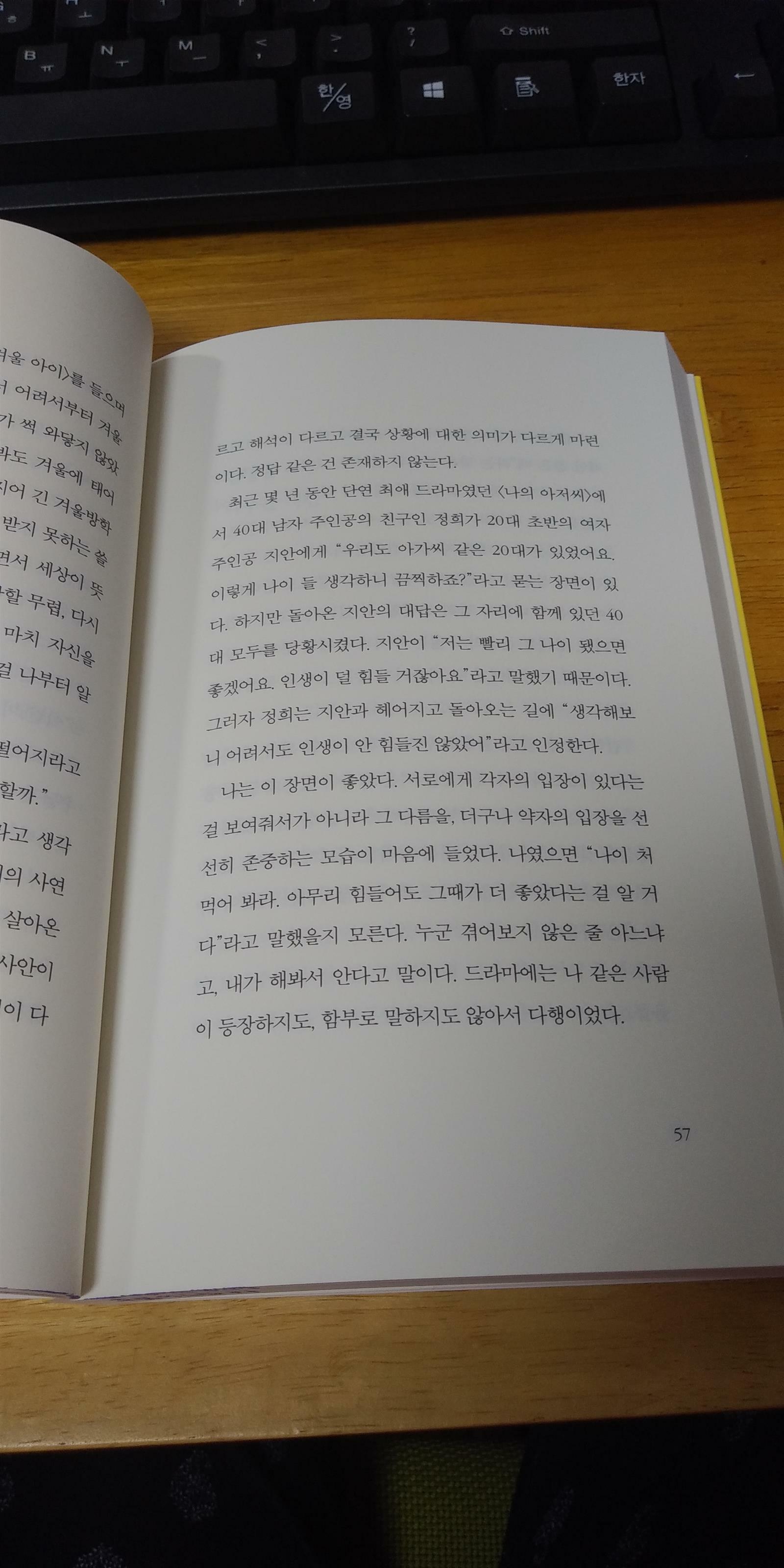 아저씨의 최애 드라마 중 하나는 <나의 아저씨>라고 한다. 이럴 수가! 나랑 같잖아! 라고 생각했다. 나도 드라마 속 저 장면을 좋아한다. 고생을 죽도록 하며 젊음 속에 질식하는 주인공 지안에게, 자신의 의견을 강요하지 않던 정희의 모습이 나도 좋았다. 그리고, 내가 <나의 아저씨>를 좋아하는 이유는, 드라마 속에 등장하는 아저씨(이선균)가 전혀 질척거리지 않았기 때문이다. 무릇 "아저씨"의 나이에 접어들고 어느 정도 사회적 지위를 갖춘 상태에서도 그런 남자는 현실에서 너무나 희귀하기 때문에 <나의 아저씨>에 나오는 그 아저씨는 나에게도 어떤 상징적인 "나의 아저씨"가 될 수 있었다. 그리고 <제가 해보니 나름 할 만합니다>의 작가인 아저씨도 이제 내겐 "나의 아저씨"가 되었다. 나의 나이가 벌써 마흔을 향해 간다는 점에서 오히려 작가분이 거부할 지도 모르겠지만 ㅋㅋ