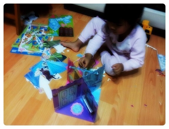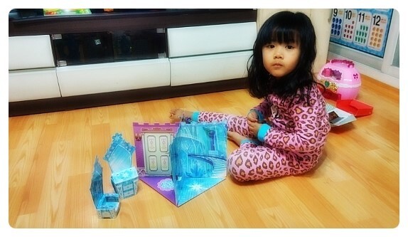 다섯살인데 아직 얼음서과 방들을 만드는 것이 조금은 어려워 보인다. 그래서 아빠의 손을 잠깐 빌려준다. 인형놀이판에서 캐릭터와 드레스들을 똑똑