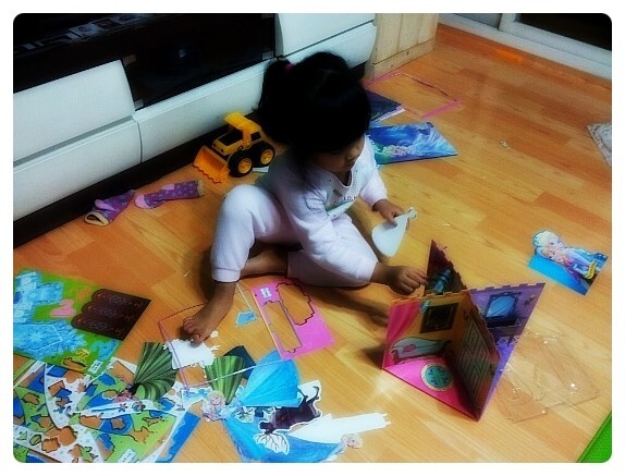 스티커??? 아빠의 대답은 'No! 이건 인형놀이 라는거야! 아빠랑 함께 해볼까?' '겨울왕국'을 조아라 하는 녀석들이라 무조건