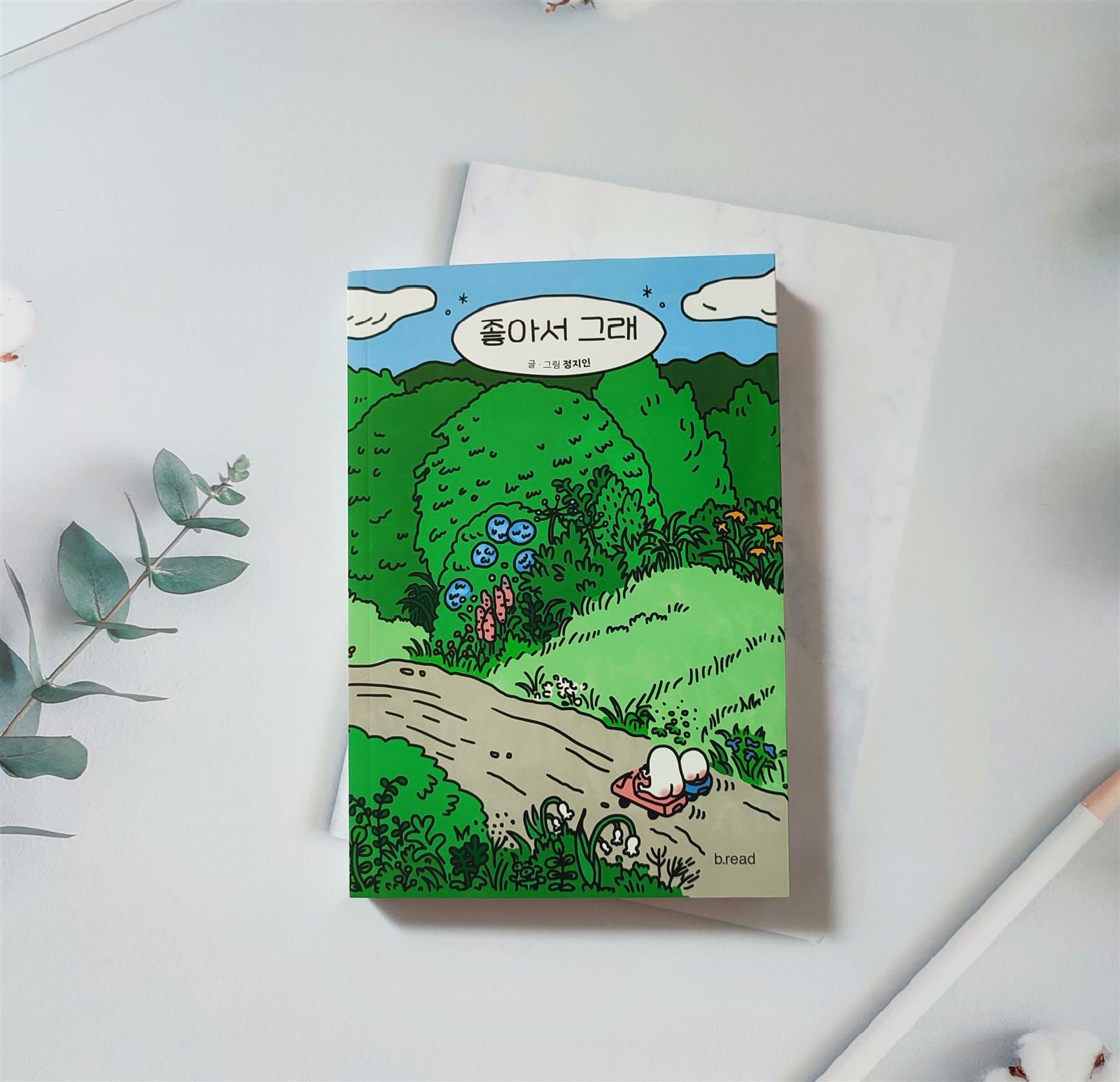 <좋아서 그래>는 그림에세이답게 귀여운 그림과 메시지를 함께 전하고 있다. 담백하면서도 말랑해보이는 캐릭터가 수줍하는 모습이 정말 인상적이었다. 그래서일까. 정지인 작가가 전해주는 메시지가 더 오래, 더 깊이 마음에 남았다. 세상에 풍파에 흔들리면서도 버티는 이유 중 하나가 나에게 맞는 속도를 유지하고, 내가 더 좋아하는 길로 가고 싶은 이 마음을 유지하기 위해서는 아닐까. 이렇듯 맥락에 전하는 메시지를 넘어 한 문장, 한 문장이 전하는 메시지가 참 좋은 도서였다.
