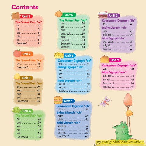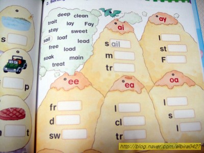 ai, ay, ee, ea, oa, sh, ch, th, wh 순으로 구성되어있답니다.