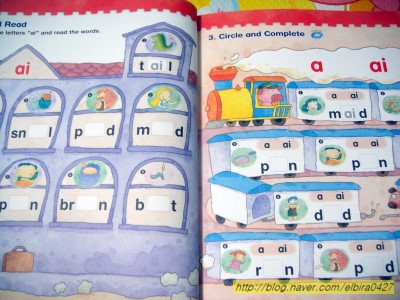 알파벳, 자음, 단모음, 장모음, 이중자 등이 나올때마다 앞서 배웠던 자음이나 단모음등이 다시 장모음 파트에서도 나오고 기초 자음과 모음을 바탕으로 장모음과 이중자를 만들어서 발음해나가는 과정을 통해서 아이들이 정확한 파닉스를 구사할 수 있고 영어에 대한 자신감도 거기서 나오는거겠죠.