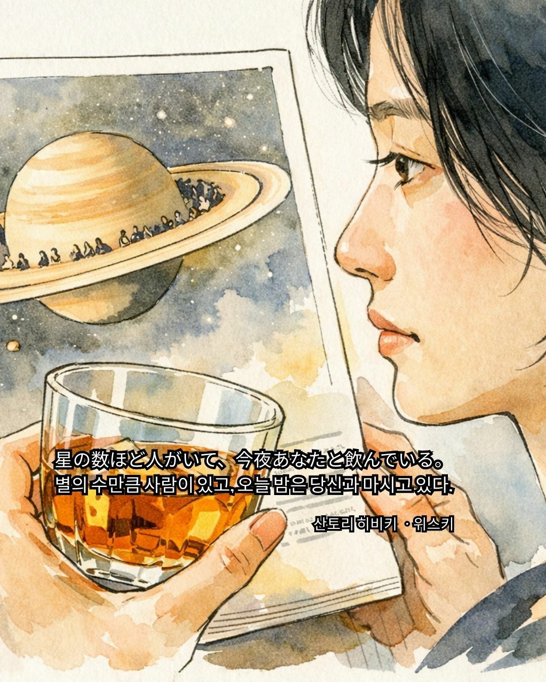 “별의 수만큼 사람이 있고, 오늘 밤은 당신과 마시고 있다” 같은 문장은 제품보다 관계를 먼저 꺼내는 방식이 정말 영리했다. 상대에게 ‘나’를 증명하기보다, 지금 이 순간의 분위기를 같이 마시게 만드는 느낌. 읽는 내가 괜히 한 번 더 좋은 사람이 되고 싶어지는 카피 문장들.