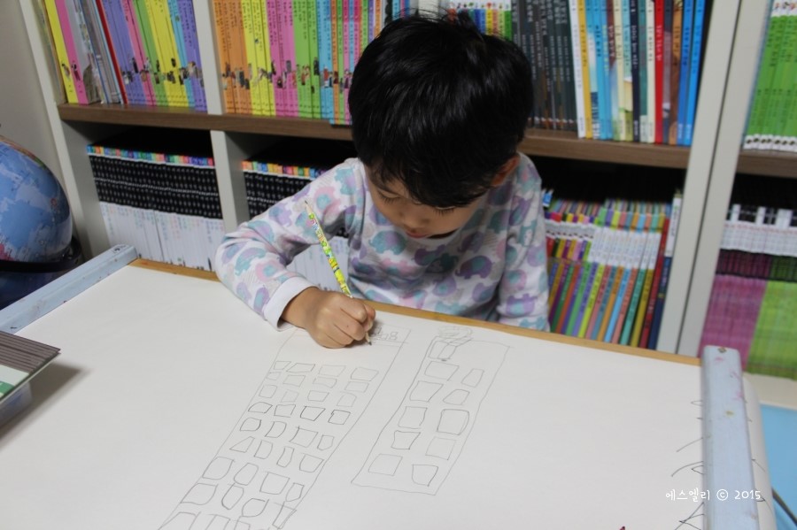 높은 건물을 좋아하는 에디. 창문도 정말 많이 그리네요~