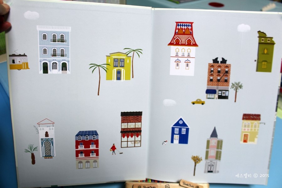 간지에 다채로운 집 그림들이 그려져 있네요!
