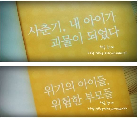 아이의 사춘기 이제 멀지 않은 일이 되었습니다. 분명 나도 겪었고 누구나 겪는 것이 사춘기라고 하지만 내 아이의 사춘기는 조금 다르게 다가옵니다. 잘못되지는 않을까 상처받지는 않을까 나와의 사이가 멀어지진 않을까 많은 생각들이 머리를 스치고 갑니다. 아이에게 농담조로 북한이 왜 남침을 못하는지 아냐며 중2때문에 무서워서 못온다는 말을 던집니다. 그리고 은근슬쩍 너는 그렇게 되지 않았으면 좋겠단 말을 건넵니다. 아이야. 너만은그 중2병에 걸리지 말았으면 좋겠다! 하지만 예외는 없겠죠. 얼마남지 아이의 사춘기를 대비하기 위해 아니 제 마음가짐을 위해 책을 듭니다.