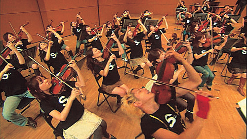 3화에 등장하는 가난한 소녀 사쿠라의 에피소드는 <노다메 칸타빌레>에서 농담과 진심이 어떻게 작동하는지를 구체적으로 보여주는 예다. 가난한 소녀 사쿠라는 사실 결코 가난하지 않은 학생이다. 교통질서 아르바이트를 하느라 매번 연습에 지각하고, 집에서 학교까지 걸어다니며, 노다메가 친구들의 도시락을 훔쳐 먹는 것과 달리 기한이 지난 편의점의 도시락을 훔쳐 먹지만, 이는 바이올린 마니아 아버지가 고가의 악기를 사느라 집의 돈을 모두 탕진했기 때문이다. 사쿠라의 집은 으리으리한 저택이며, 가구엔 차압증서가 붙어 있지만 모두 고가의 수입 제품이고, 숨겨진 방에는 10억원을 호가하는 바이올린들이 차곡차곡 쌓여 있다. 결국 노다메와 치아키, 미네는 사쿠라의 아버지를 설득하고, 사쿠라는 생활의 안정을 되찾는다. 한국영화 <다세포 소녀>가 소녀에게 가난 인형을 업혔던 것처럼 <노다메 칸타빌레>에선 소녀에게 콘트라베이스를 업힌다. 사쿠라의 뒷모습은 멀리서 보면 마치 콘트라베이스가 걸어가는 것 같다. 하지만 <다세포 소녀>에서 인형이 가난에 대한 일종의 표식에 머물렀던 것과 달리 <노다메 칸타빌레>에서 콘트라베이스는 가난 그 자체다. 사쿠라의 아버지는 사쿠라가 바이올린을 연주하길 바랐다. 하지만 사쿠라는 콘트라베이스를 택했고, 아버지는 미련을 버리지 못한 채 바이올린을 그냥 사재기만 했다. 여기서 가난은 철저히 콘트라베이스에서 시작된다. 그래서 사쿠라가 콘트라베이스를 업고 걸어가는 데에는 농담 이상의 진심이 담겨 있다. ‘걸어 다니는 콘트라베이스’ 자체가 가난한 상황에 대한 설명은 물론, 원인과 해결방법까지 제시하고 있다. 이는 <다세포 소녀>의 인형이 가난에 대해 아무 말도 하지 못했던 것과 대조된다. <노다메 칸타빌레>에서 농담은 진심에서 시작되고, 진심은 농담의 옷을 입고 표현된다. 유치할 정도로 솔직해서 부담없는 진심, <노다메 칸타빌레>는 클래식에 맞춰 방귀체조를 하는 변태드라마다. 꺄악~.