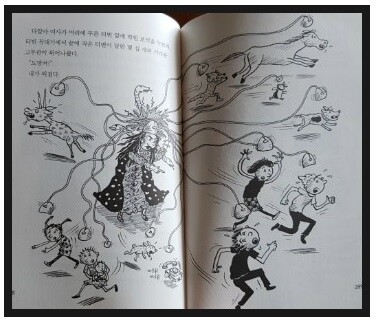 좌충우돌, 정신없이 펼쳐지는 이야기와 장난스러운 말 그리고 자유롭게 지어진 노래들이 펼쳐져 두께가 있는 책인데도 불구하고 지루할 틈 없이 자연스럽게 흘러가는 이야기 전개가 아이들을 꼼짝 못하게 하는 비결인 것 같다.