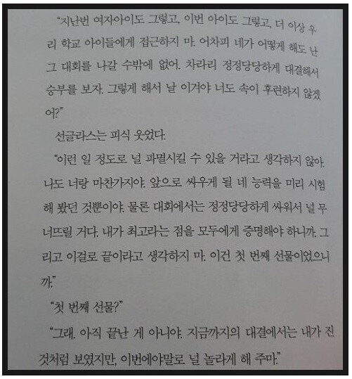 스스로 일어서고 싶었던 하늘이와 끝까지 친구를 지키기 위해 버텨내려 한 형태 그리고 외로움을 외로움을 주는 자가 되어 잊기 위해 애쓴 진구까지. 상처를 하나씩 가슴에 안고 살아가는 세 아이의 이야기를 들으면서 얼마나 가슴 졸이며 살아왔을까 싶어 마음이 아팠다.