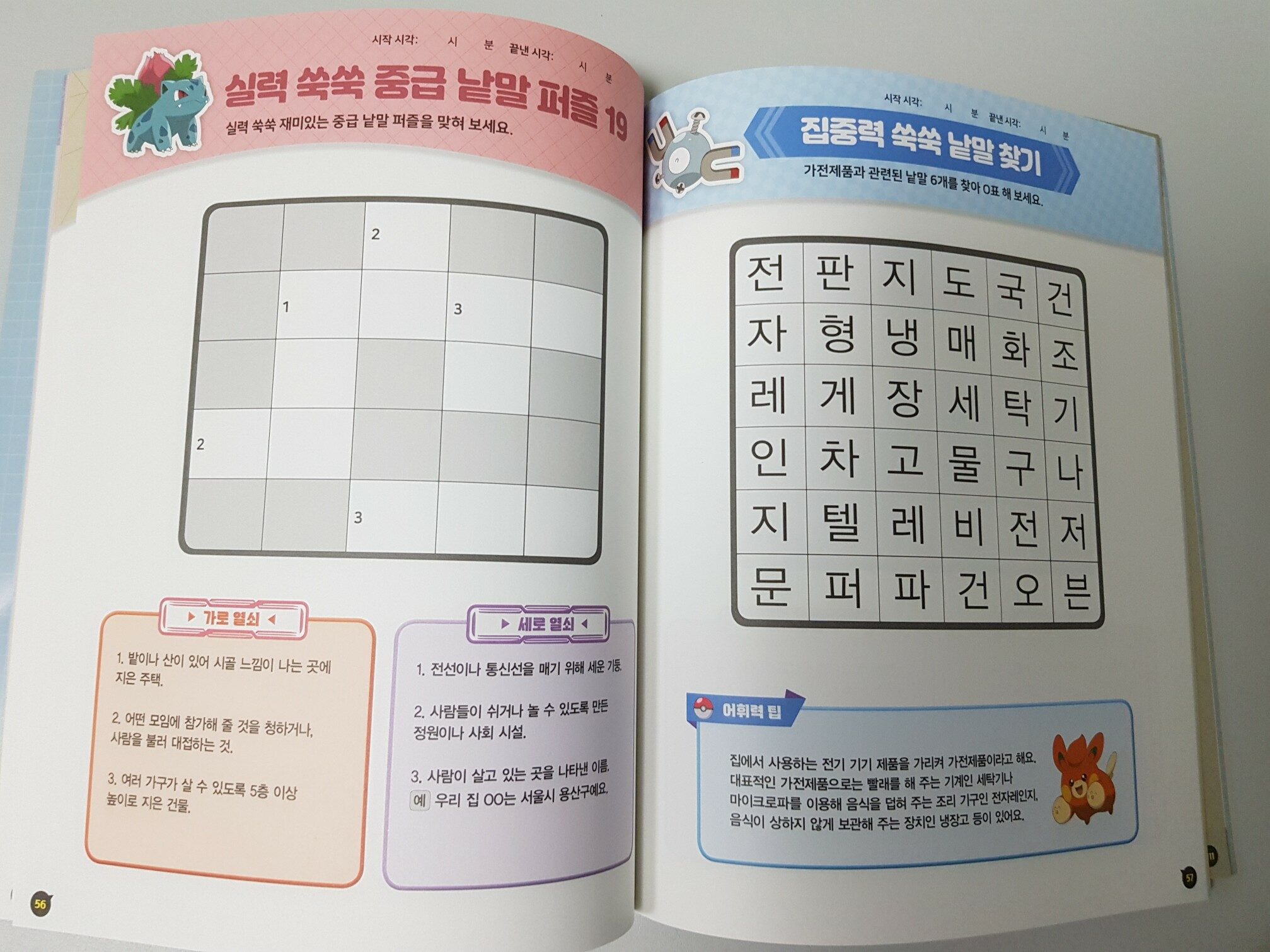 아이가 유치원을 졸업하고 학교에 들어가면서 국어라는 과목이 생기니 어휘력이 급증한 것을 느낀다. 아이의 어휘력은 곧 국어의 문해력 상승으로도 생각하기 쉽다. 어휘를 통하여 문해력도 상승하고 아이의 상상력과 창의력도 활발하게 나아갈 수 있다는 생각이 든다. 이 때문에 어휘력 향상은 아이에게 계속 도전해 주고 싶은 분야이다. 이번에 포켓몬스터 가로세로 낱말 퍼즐이라는 책을 만나 보았다. 두뇌력 마스터 시리즈의 1권이다. 아이가 낱말 퍼즐을 자주 접해보지 않아서 처음에는 생소하게 느꼈는데 가로, 세로라는 의미를 정확히 알려 주고 중복되는 글자, 음절에 관해 알려 주어 가로 세로 낱말을 이어간다는 간단한 규칙을 알려 주자 아이가 매우 흥미로워했다. 책의 구성도 마음에 든다. 알쏭달쏭 초급, 중급 그리고 더 나아가 고급 낱말 퍼즐까지 분야로 되어 있다. 이 책은 아이의 흥미를 일으킬 수 있도록 아이들이 좋아하는 포켓몬스터 캐릭터가 그려져 있다. 우리 아이도 좀 더 집중하고 재미있게 풀어내고 있다. 이 퍼즐은 가로 세로의 문제만 나와 있는 것이 아니라 집중력을 향상시킬 수 있게 주제와 관련된 낱말을 찾아 동그라미 해 보는 기회도 주어진다. 예를 들어 환경과 관련된 낱말이나 포켓몬스터 캐릭터를 찾는 이름을 찾아 동그라미를 해 볼 수 있다. 또한 국경일이나 가족과 관련된 낱말을 찾고 동그라미를 해 보면서 단어 뜻도 생각해본다. 나아가 집중력도 높아지지만 관찰력이나 그 단어의 의미를 좀 더 깊게 생각해 볼 수 있다. 아이가 골똘히 생각하는 모습에 이 책이 주는 교훈이나 효과를 살펴볼 수 있어 좋다. 낱말 퍼즐에는 가로 열쇠, 세로 열쇠 문제가 있고 단어가 의미하는 뜻을 문제 내고 있어답에 해당하는 단어에 대해 생각해 보는 기회가 된다. 특히 예문으로서 짧은 문장도 힌트로 주어져서 빈칸에 단어를 넣어서 생각해 볼 수 있다. 이 책에는 간간히 두뇌 트레이닝을 할 수 있는 낱말잇기, 끝말잇기 등의 문제가 주어져서 아이가 흥미를 주곤 한다. 그리고 이 시기의 아이가 미로 찾기를 굉장히 좋아하는데 우리 아이도 미로찾기에 도전해보았다. 낱말을 포함한 미로 찾기가 있어 처음에는 갸우뚱 하더니 곧 길을 찾아가면서 단어 뜻을 이해할 수 있었다. 해답 부분이 나와 있는 페이지가 있어 맞추어 보는데 도움이 된다. 아이가 좋아하는 포켓몬스터 캐릭터를 찾아보면서 낱말 퍼즐도 함께 풀어 볼 수 있으니 어휘력도 상승하는 느낌이다. 그리고 재미있는 놀이 활동으로 집중력과 관찰력도 높아질 수 있다. 예를 들어 그림자를 찾는 모습은 그 캐릭터의 실루엣을 연상하면서 재미와 효과를 극대한다. 아이가 이 책을 통해 단어에 좀 더 쉽게 접근하고 재미있는 퍼즐 놀이로도 확장할 수 있다는 생각을 하게 되었다. * 서울문화사 출판사로부터 도서를 무상제공 받았습니다.
