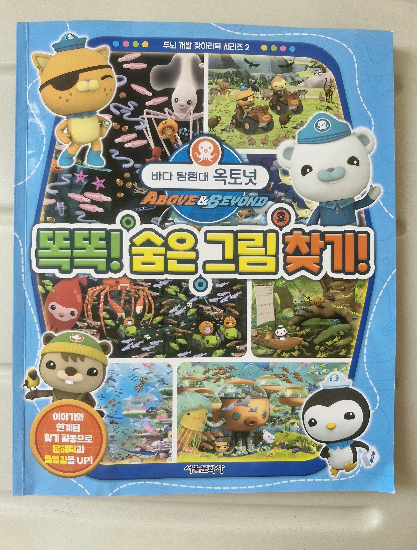 아이가 즐겨보는 TV 프로그램 애니메이션이 점점 늘고 있다. 부모로써 학습에 대해 좀 더 길게 시간을 할애하고 싶지만 괴리가 느껴지는 것 같다. 학습 효과가 있는 애니메이션을 즐겨 보게 하고 싶은 마음에 기쁜마음으로 허락해 준 애니메이션이 있다. 바로 바다 탐험대 옥터넛이다. 옥터넛을 보았다면 교육적인 애니메이션이라는 생각이 들 것이다. 옥토넛 탐험대 대원이 주인공인데 바다 그리고 육지 까지 활동 범위를 넓히면서 자연 생태계를 구하고 보존하면서 탐험을 이끌어가는 스토리다. 아이가 바다 탐험대 옥토넛 프로그램을 많이 좋아하는데 이에 맞는 재미있는 책이 있어 선택하였다. 두뇌 개발을 높여주고 재미있게 함께 찾으면서 실력이 늘어날 수 있는 도서이다. 바로 바다탐험대 옥토넛 똑똑 숨은 그림 찾기 이다. 바다 탐험대 옥토넛은 상영하는 영화로도 볼 만큼 아이가 좋아하는 애니메이션이라 이 책도 거부감 없이 시작한다. 아이가 좋아하는 스티커가 있어 책을 접하는데 더 즐거움이 있다. 숨은 그림 찾기 책인데 숨은 그림 찾기에만 국한된 것이 아니라 책을 즐길 수 있는 다양한 요소들이 많아 너무나도 재미있다. 제일 먼저 옥터넛 대원을 소개하고 그들이 갖고 있는 소지품을 스티커로 붙여본다. 그리고 글자 쓰기, 숨은 그림 찾기, 영어 알파벳 따라쓰기 등 재미있는 요소가 많아 즐겁게 한다. 중간 중간 그림자 연결하기 등의 두뇌 트레이닝 요소가 있어 흥미롭다. 그리고 빙하를 탈출하라는 미로 찾기도 있는데 줄을 그어보면서 정답을 이끌었을 때 아이가 정말 좋아한다. 그리고 숨은 그림 찾기에 여러 친구들을 찾으면서 관찰하고 정답을 찾을 수 있다. 그러면서 집중력도 늘어날 수 있다. 아이가 한창 영어도 배우는 중인데 영어 단어를 따라 쓰면서 또 다른 재미를 느낄 수 있다. 간단하게 상식이 담긴 이야기가 있어 함께 읽어 보는 시간을 갖는다. 다양한 생물 지식을 얻을 수 있고 내가 모르는 탐험에 관해 더 자세하게 읽을 수 있다. 요즘 과학 시간에 지구 온난화로 인해 변화가 생기는 과정을 배우는데 재미있는 애니메이션을 읽으면서 기후 변화, 북극의 빙하가 녹는 현상등을 직접 알아보고 생태계의 파괴등을 간접적으로 관찰할 수 있다. 빙하가 녹았을 때 일어날 수 있는 위험 요소에 관해 생각만 했었는데 책을 통해 실제로 생물들이 고통받고 있다는 것을 실감하게 되니 아이에게 교육적 효과로도 높은 메세지를 준다. 자연 생태계를 보존하면서 탐험을 이끌어간다는 목표를 바탕으로 두뇌 플레이도 하게 되니 일석이조이다. * 서울문화사 출판사로부터 도서를 무상제공 받았습니다.