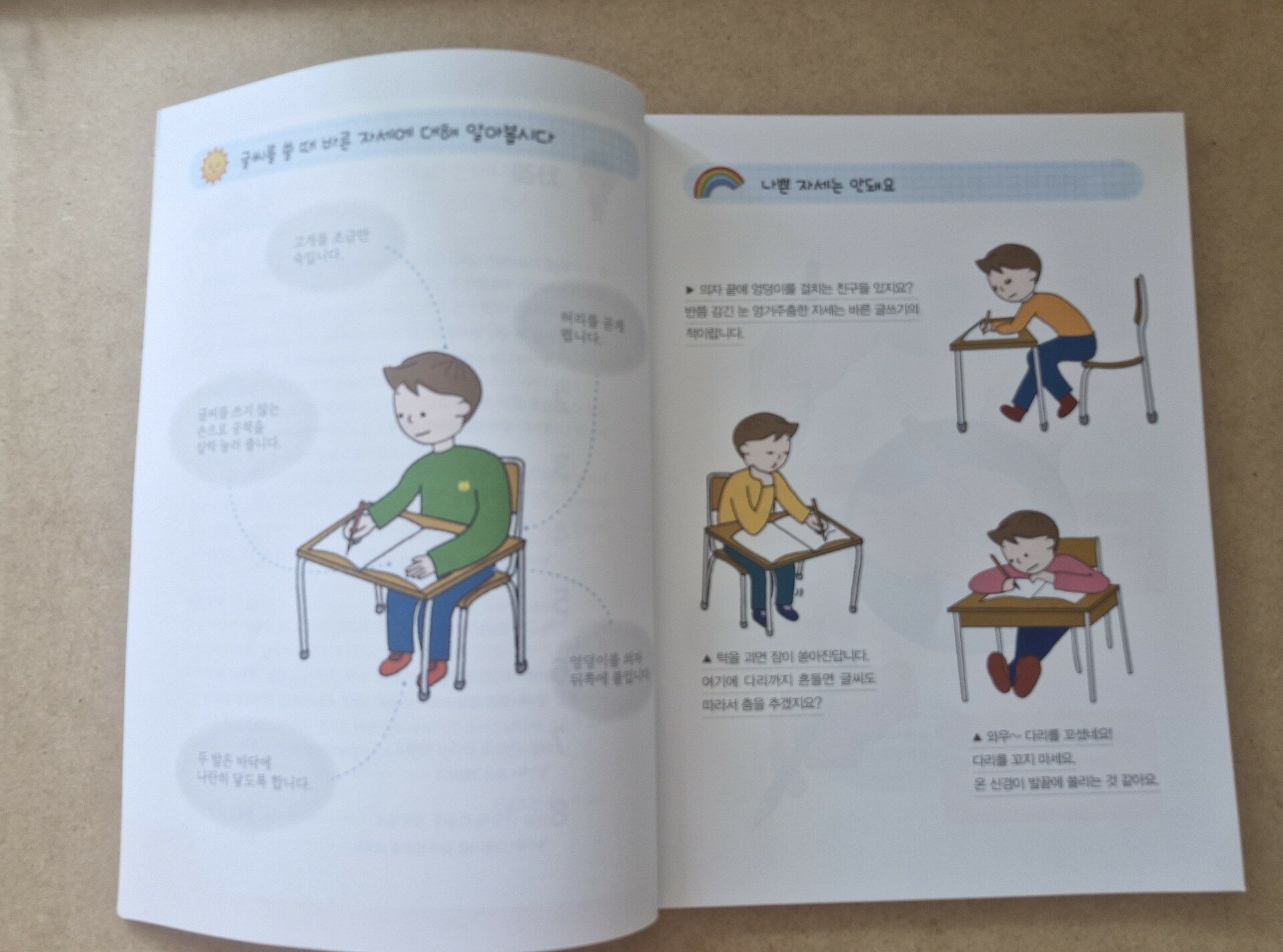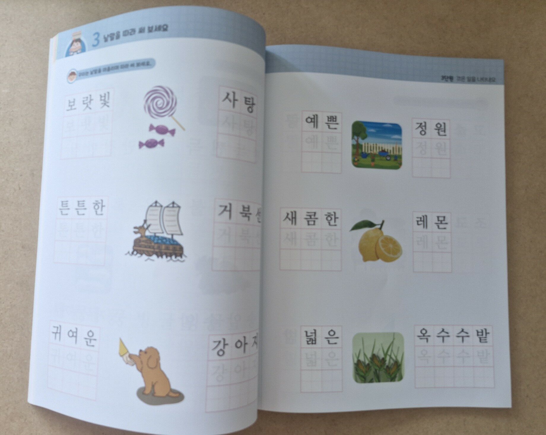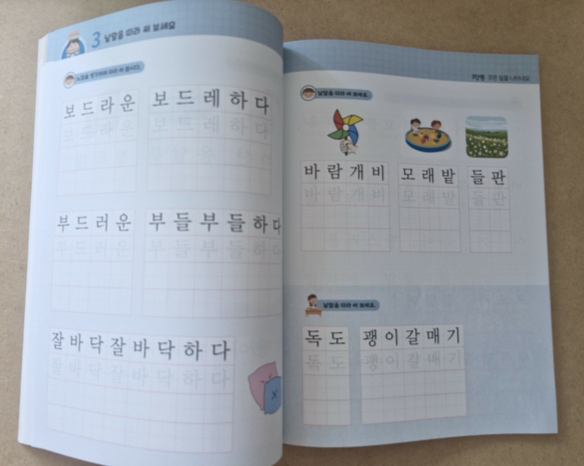 아이가 학교에 다니게 되면 많은 환경이 변한다. 미취학때와는 다르게 수업시간에 교과 과정이 시작되고 나니 아이도 꾸준히 학습이라는 것을 경험 하게된다. 그동안 유치원에서 누리과정으로 배우고 가정에서 돌보아주던 내용과는 달리 수업 시간에 교과서로 배우다보니 좀 더 체계적으로 학습을 시작해야 겠다는 생각을 하게 된다. 이번에 2학년 선행학습을 위해 국어 교과서 따라쓰기라는 도서를 만나게 되었다. 1학년 2학기까지는 이미 선행이 되어서 2학년 교과과정이 궁금한 이유이기도 했다. 이 책은 2024년 시행하는 2022년 현재 개정된 교육 과정을 반영하여 학습할 수 있는 책이다. 교과서로 초등 생활을 미리 준비할 수 있으면 더없이 좋지만 교과서를 미리 만나볼 수 없으니 초등 국어 교과서를 반영한 학습 도서가 유익하다고 생각해서 선택하였다. 책을 살펴보니 공부 습관을 길들이기위해 기초적인 페이지부터 시작이 된다. 바로 바른 자세와 바르게 글씨 쓰는 방법을 설명하고 있다. 글씨를 쓸때 의자에 바르게 앉는 자세와 바르게 연필를 잡는 법이 등재되어 있다. 한 번 제대로 된 습관을 길들인다면 나중에 교정할일이 없어 아 이 학습 자세를 유지하는 데 도움이 된다. 글자의 기본이 되는 자음과 모음을 바르게 써보는 기초 페이지를 지나 자음과 모음이 결합해서 완성된 글자를 보게 된다. 모든 페이지가 가위로 자를 수 있는 부분이 있다. 페이지를 오려서 휴대할 수 있다. 자음, 모음을 헷갈려 한다면 페이지를 오려서 따로 학습할 수 있기에 용이하다. 쉬운 낱말을 따라쓰는 단계를 시작으로 난이도 있는 낱말 그리고 문장을 따라쓰도록 페이지가 이어간다. 놀이터라는 페이지가 중간에 있어 생각의 힘을 기르게 된다. 놀이터 페이지는 글자를 따라쓰는데 유익한 쉼터가 된다. 우리 아이도 쌍받침 낱말이나 곁받침 낱말을 헤갈려하는데 관련 용어도 한 번씩 읽어보는 계기가 된다. 생각을 적는 코너가 있어 아이의 문해력이 향상하는 기회도 된다. 특히 나를 소개해 보는 페이지에서 나에 대해 생각해보고 나의 장점과 단점에 관해 생각해 보면서 생각이 확장하는 것을 느낀다. 또한 단어에 대해 뜻과 짧은글을 만들어보듯이 심화과정이 있어 도움이 된다. * 스쿨존에듀 출판사로부터 도서를 무상제공 받았습니다.