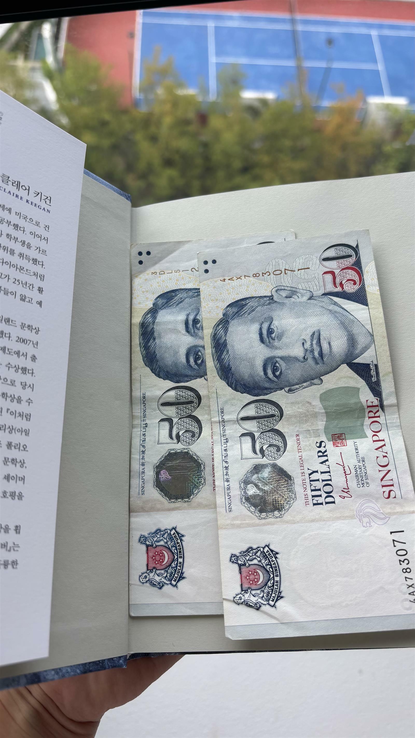 아, 올해 마지막으로 읽은 책, '클레어 키건'의 [남극]은, 지난주에 싱가폴에 와서 나랑 크리스마스를 함께 지낸 친구들이 주고간 책이다. 친구들이 간 다음날 이걸 읽어볼까, 하고 책을 펼쳤던 나는, 그 안에서 다정한 메모와 함께 현금을 발견한다.
