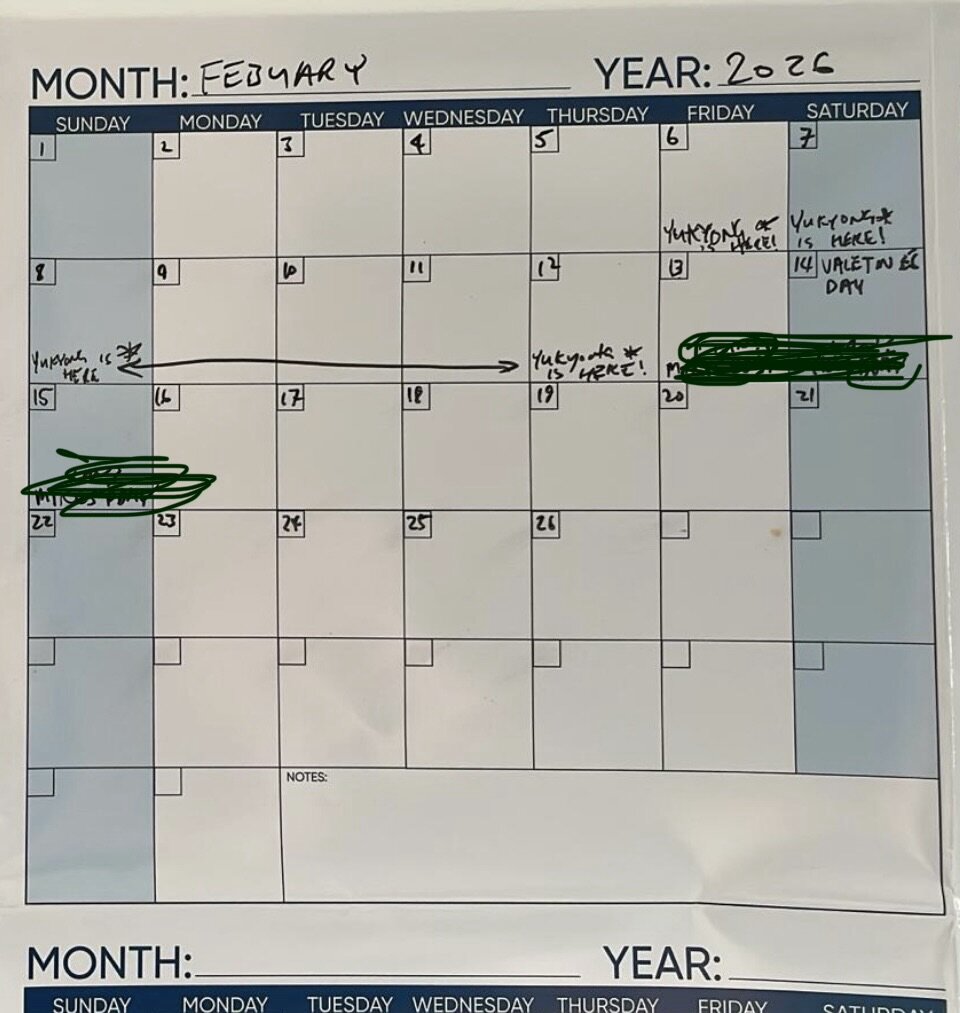 그는 happy 했고 excite 하다고 했다. 실제로 내가 그에게 톡으로 그 얘기를 하고 나자 I'd love to! 라고 했다. 아직 일정을 잡기 전이었는 나는, 그 얘기를 하고난 며칠 뒤 나의 일정을 그에게 공유했고, 그러자 그는 바로 캘린더에 적겠다고 했다. 그렇게 캘린더를 내게 보여주었다.(초록 일정은 그의 프라이빗이라 내가 지움)