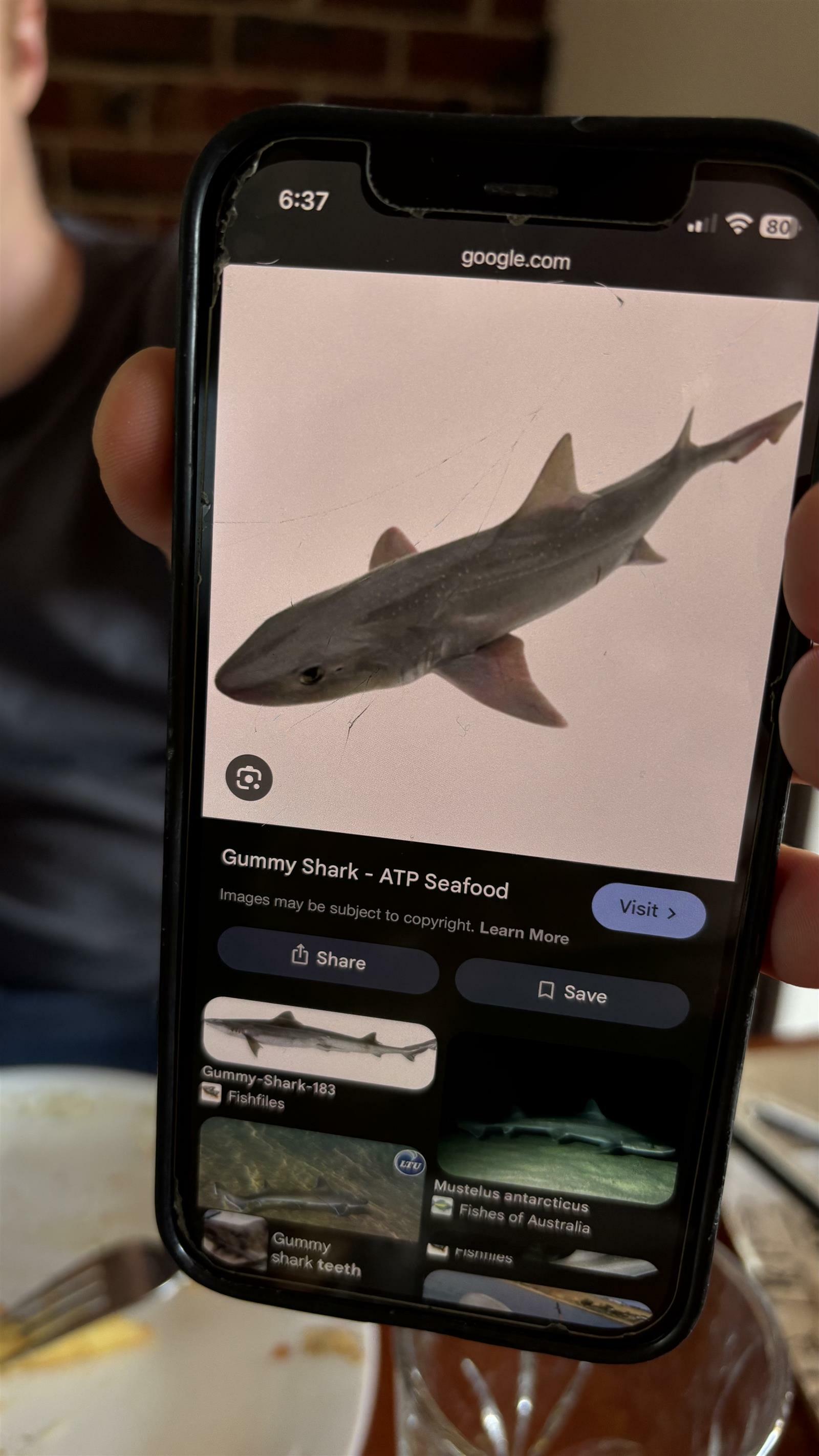 개인 접시 가운데가 잘라둔 피시앤칩스인데, 하, 얘들아... 이거 상어래... 앤드류가 애초에 사기 전부터 나한테 오스트레일리아에서 피시앤칩스는 shark 라고 했다. No kidding 이라고 했더니, 키딩이 아니라고 했다. 내가 이걸 앞에 두고도, Are you sure? 했더니, 100percent 란다. 오 마이 갓. Am I eating shark now? 했더니, 맞다면서 사진도 찾아서 보여준다.