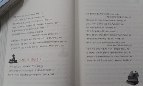 고전 읽기의 중요성이야 귀에 못이 박히도록 들어왔고, 그 말에 따라 중고등학생 시절, 그래도 그나마 내 두뇌가 말랑말랑 하던 때 주야장천 고전이라는 것을 읽어대기는 하였으나, 도대체 어떤 고전을 어떻게 읽어야 하는가에 대한 가르침을 주는 이는 아무도 없었다. 문고본 책의 목록을 보고 마음에 드는 책을 골라 읽다가 거기서 가지를 치고 치고 또 쳐서 책 읽는 양을 늘려가는 것 뿐. 게다가 파우스트니, 신곡이니 하는 것들, 즉 대부분 문학작품의 고전을 주로 읽기 마련이었는데 이 책에서 소개하는 고전은 실로 다양했고, 내용 또한 고전에서 뽑아 읽어야 할 고갱이들로 꽉 들어차 있었다.