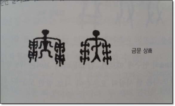 금문에서 상 자는 어떤 사람이 '붕'을 가득 메고 뱃머리에 서 있고 그 곁에는 또 한 사람이 배를 젓는 것처럼 보인다. 그들이 돈을 가지고 온 세상을 골골샅샅 돌아다니며 오가는 것이 바로 장사가 아니면 다른 무엇이겠는가?-100
