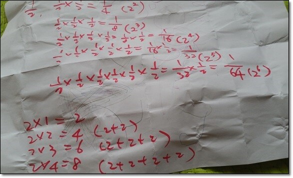 이 작업을 통해 제곱의 개념과 곱셈의 개념의 차이점도 한 번 더 가르쳐주었다.