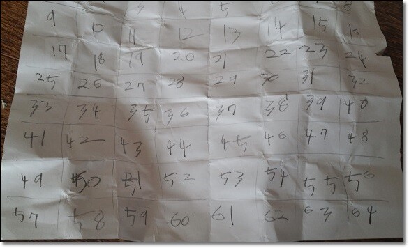 크크. 삐뚤빼뚤. 1부터 64까지 숫자 쓰기를 시켰다.
