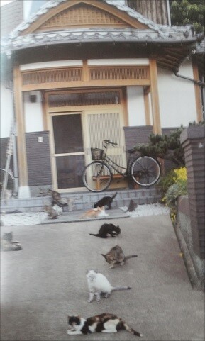 기와를 얹은 전형적인 일본 전통가옥 마당에 열댓 마리의 고양이가 앉아 있었다.