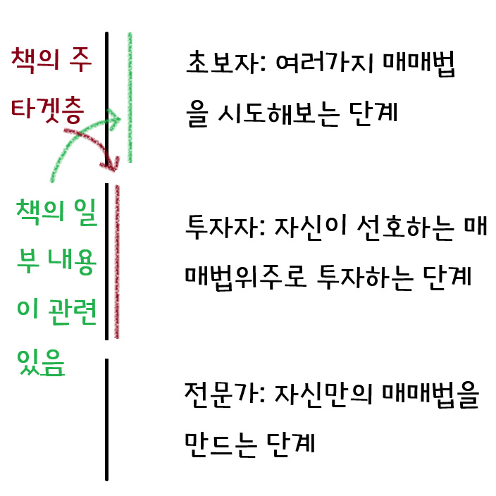 책의 타겟층은 매우 넓으나 재테크 책에서 자주 다루는, 절약, 절세등의 내용은 매우 빈약하므로 초보자 파트의 내용과 주입식으로 전달하는 경제학 내용은 기대하지 않는 것이 좋아요. 오히려 하향식 주식 투자를 하기 위한 경제학과 관련된 내용이며, 경제학의 기본은 알고 있다는 가정에서 쓰는 책과 유사한데, 만약 경제학을 모르는 사람을 위해 썼다면 주입식 교육같이 느껴질 거에요.