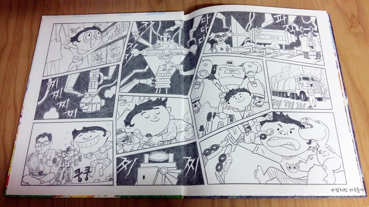 책 앞뒤 면지에는 만화로 파크봇과 동화의 모습이