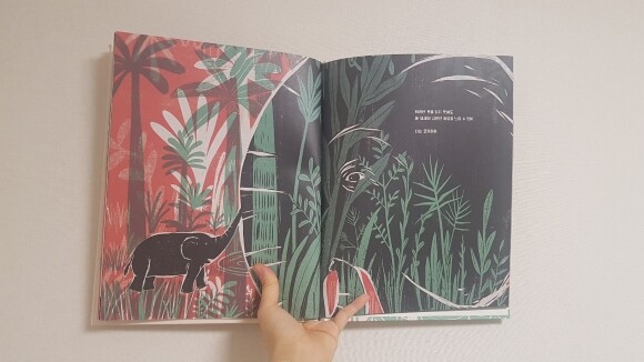 면지의 코끼리들. 자연 속에서 행복하게 지내는 모습을 담은 것 같았어요.