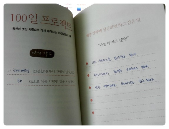 이 책은 실천을 위한 책이라서 100일 프로젝트를 위한 계획표가 수록되어 있다.