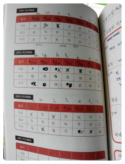 사진에서 보다시피 나는 의욕이 앞서 첫주와 들째주에는 24시간 금식을 마구 집어 넣었었다.