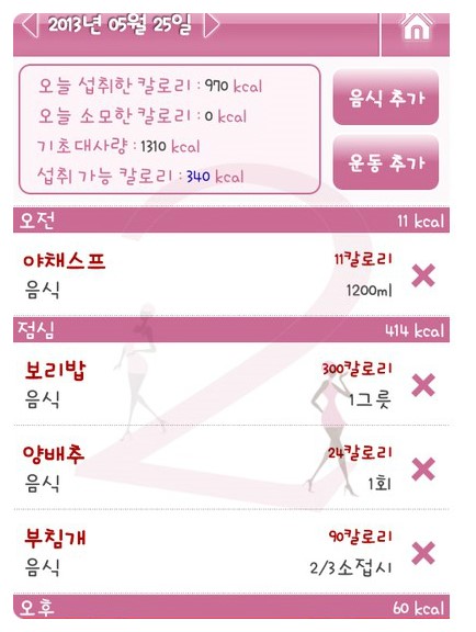 매일매일의 섭취열량과 소비열량을 비교할수 있어서 음식조절하기가 쉽다.