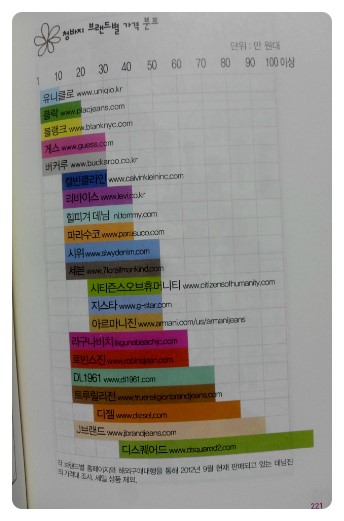 청바지의 여러 브랜드와 가격대 까지 나와 있어 자신의 예산에 맞춰 브랜드를 고를 수도 있다.