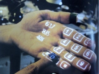 오른손을 흔들자 다양한 색깔의 컴퓨터 아이콘들이 원을 그리며 벽에 나타나고. 그가 벽 오른편에 있는 이메일 아이콘을 가리키자 바로 그의 메일함이 열렸다. 왼손을 흔들어 날씨 아이콘을 가리키자 곧바로 열흘간의 날씨 예보가 나타났다. 두 손의 엄지와 검지로 네모난 틀을 만들자 그 틀에 담긴 이미지가 벽에 나타났다. 마지막으로 청중에게 자신의 오른손을 펴 보였다. 거기에는 전화기 버튼 이미지가 투영되어 있었다. 그는 전화번호를 눌러 자신의 여자친구에게 전화를 걸었다.