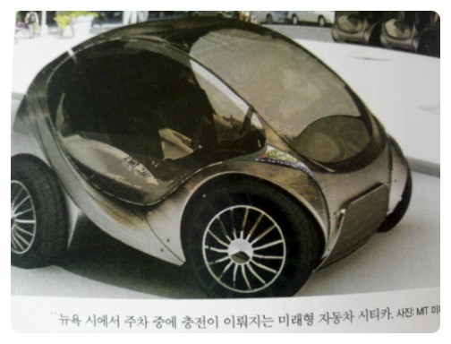 도시의 자동차의 85%는 한사람의 소유물이고, 게다가 그것들이 도시에 있는 시간의 95%는 주차되어 있는 시간이다. 사람이 안 탄, 그냥 세워져 있는 자동차가 도시 곳곳에 어마어마하게 널려있다는 말이다. 이런 문제를 해결하기 위해 나온 결과물이 바로 '시티카'이다. 시티카는 전기로 굴러가고 디지털로 조작되며 접혀질 수 있고 에너지 효율이 높으며 두 명이 탈수 있는 스마트한 자동차다. 로봇 바퀴에 온갖 장치들이 들어가 있어서 차체를 접을 수가 있기 때문에 보통 차 한대가 주차할 수 있는 공간에 시티카 세대가 들어간다. 또한 그렇게 접혀진 상태에서는 마치 슈퍼마켓 출입구에 있는 쇼핑 카트나 공항의 수하물 카트처럼 빽빽하게 나란히 붙여 놓을 수도 있고, 그런 상태로 충전할 수 도 있다. 자동차의 차체가 반드시 금속이어야 하는가에 대한 발상의 전환이 이런 발명품을 낳게 했다.