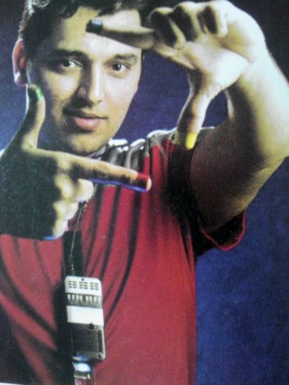 프라나브 미스트리는 청중들 앞에서 '식스센스'라는 새로운 기기를 선보이고 있다.