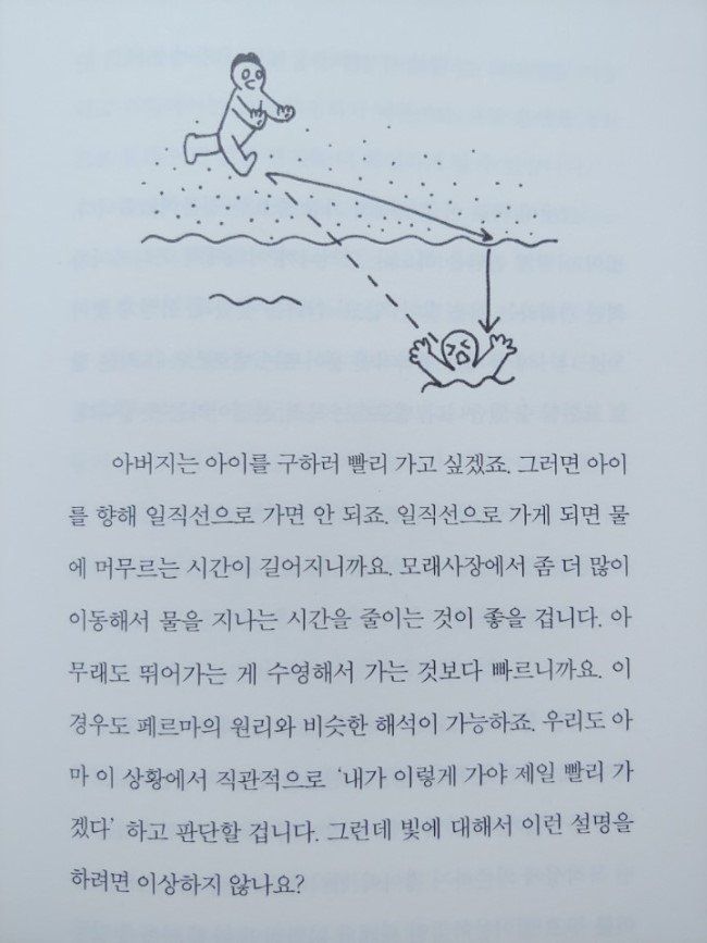 물에 빠진 아들을 구하러 가는 아빠의 거리가 예로 나오는데