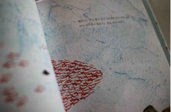 바닷속 세상의 아름다움은 여러가지 표현기법으로 그 모습을 더욱 강조해줍니다. 아름다운 색감으로 번짐이 살아있는 바다 생물들이라던가 마블링을 이용한 다양한 색의 바다 색이 더욱 환상적입니다. 신비로운 바다의 모습에 빠져들게 됩니다.
